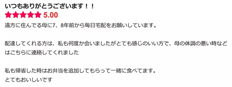 こちらの方は、離れて暮らす高齢のお母様のために、ニコニコキッチンの宅配弁当を利用されています。